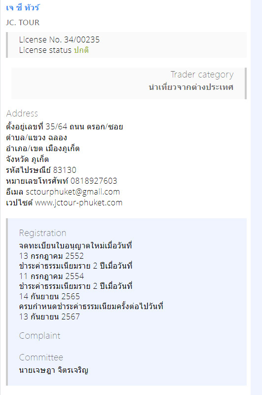 - Licensed and Trusted: Jc.Tour is a fully licensed tourism company, registered under Thailand's law for both inbound (within Thailand) and outbound (international) travel. You can verify our registration at http://www.tourism.go.th (Outbound: 31/01235, Inbound: 34/00235).